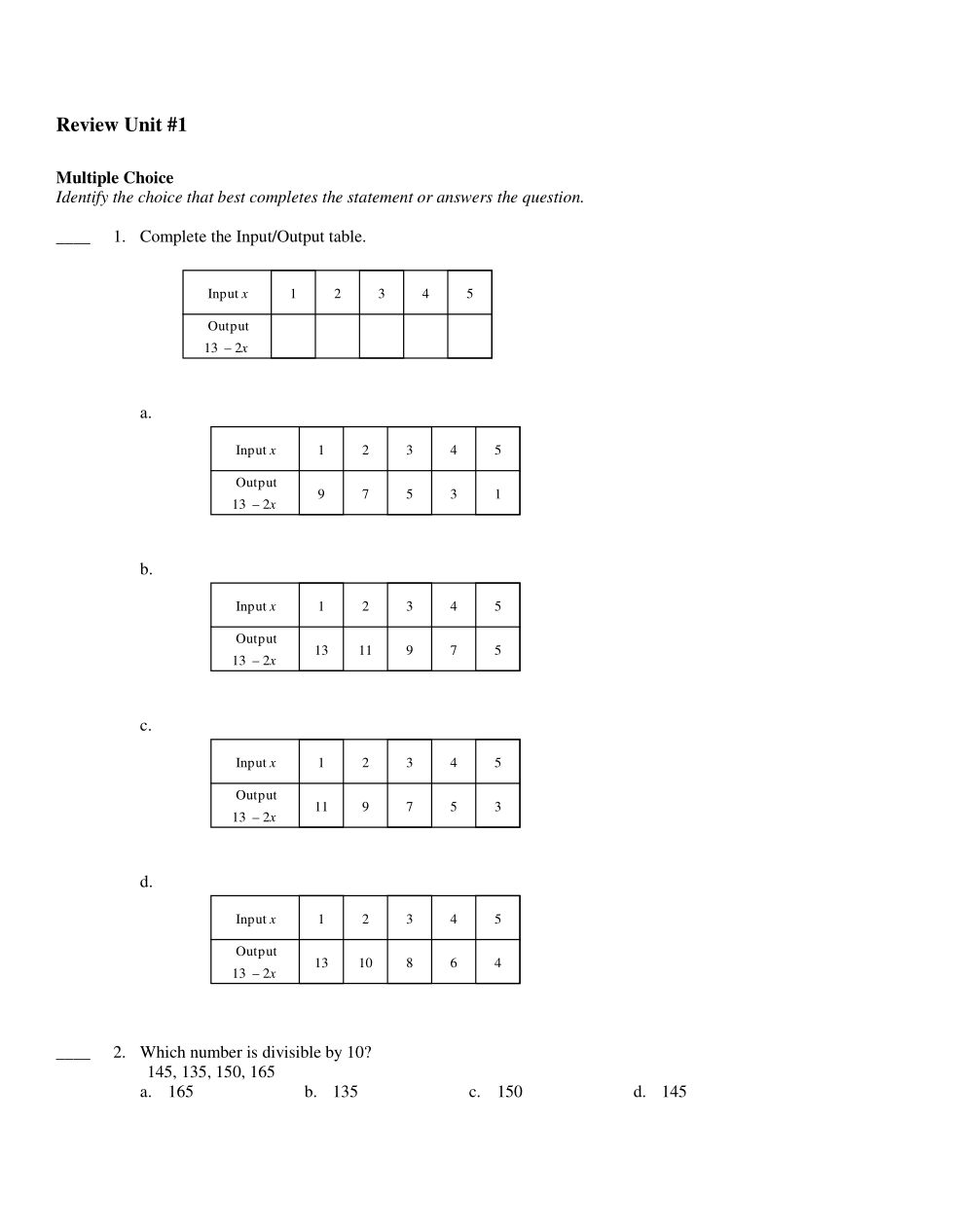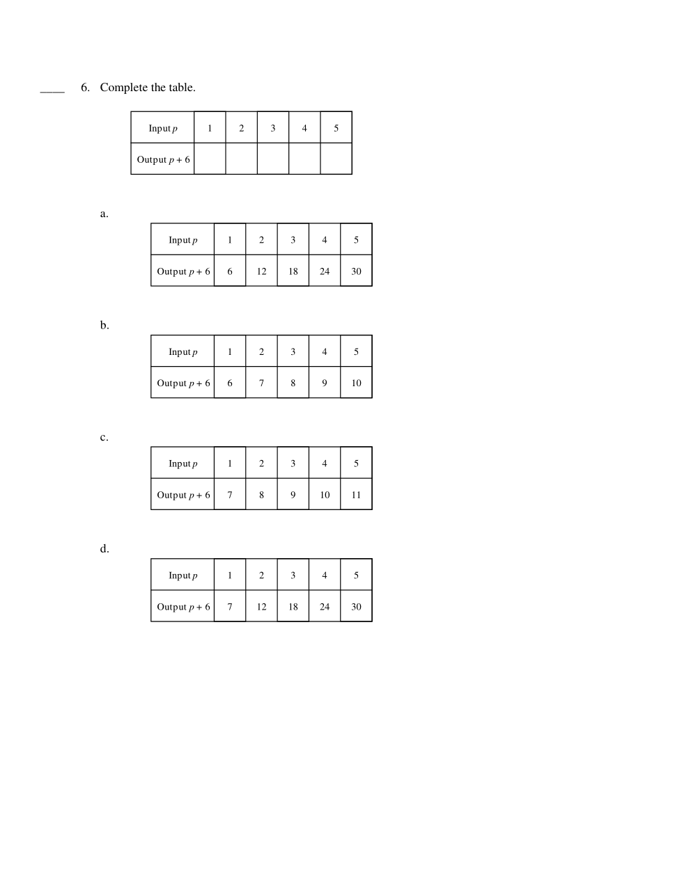 Complete the Input/Output table.