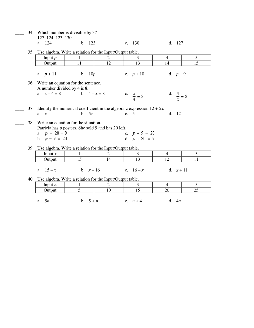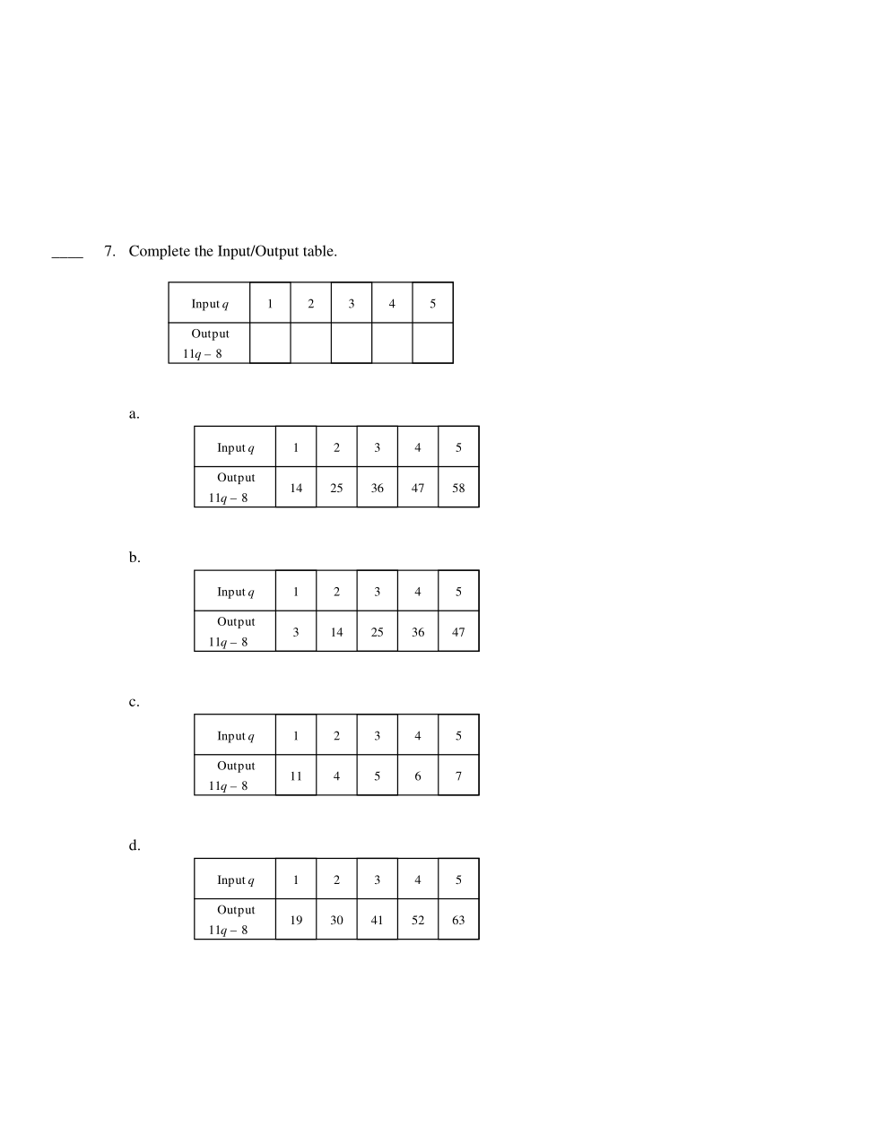 Use algebra. Write a relation for the Input/Output table.
