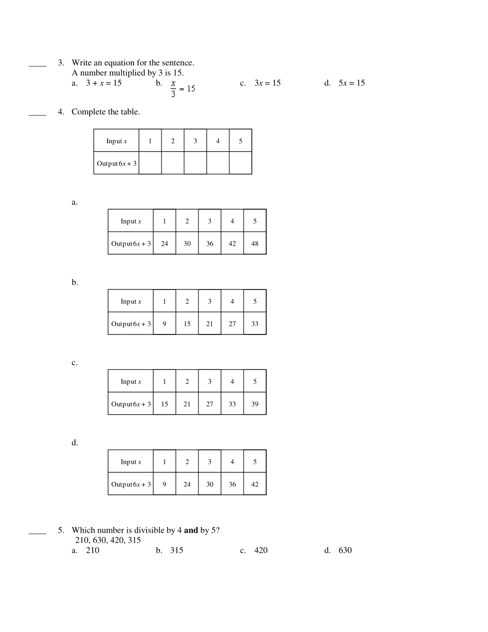 A number multiplied by 3 is 15.