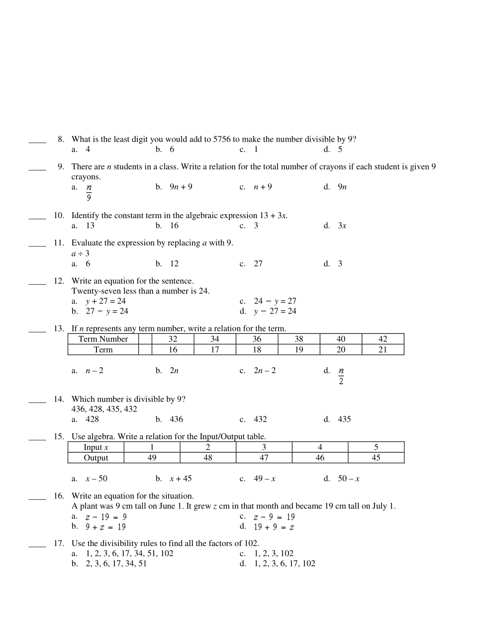 If n represents any term number, write a relation for the term.