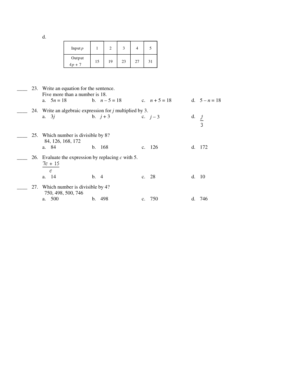 Evaluate the expression by replacing c with 5.