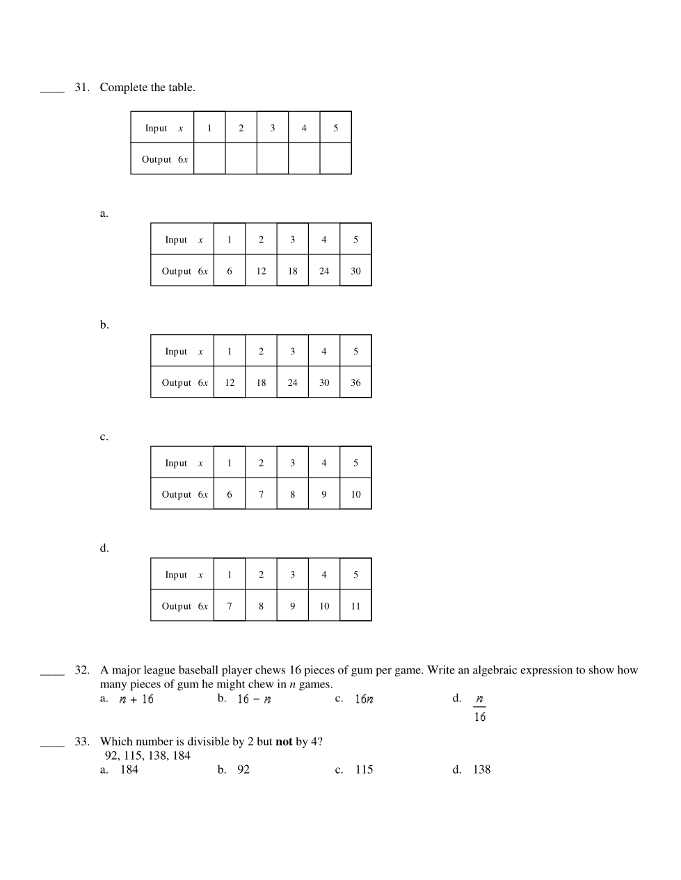 A major league baseball player chews 16 pieces of gum per game. Write an algebraic expression to show howmany pieces of gum he might chew in n games.