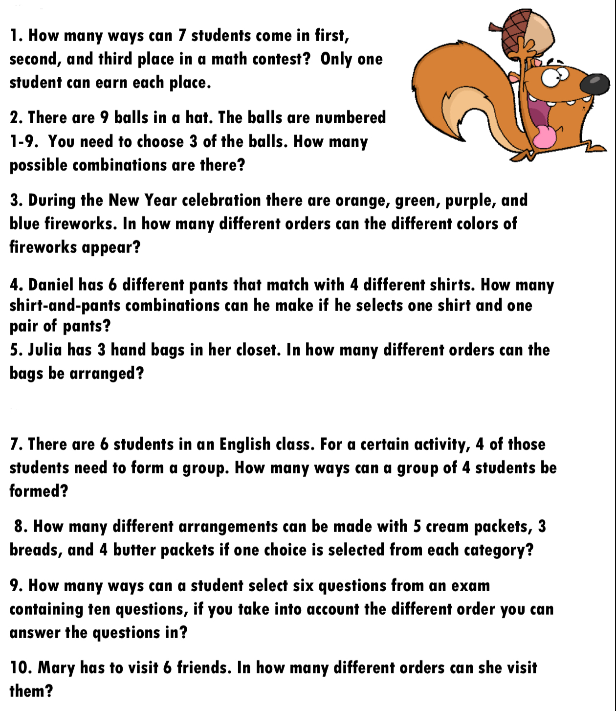 Permutations and Combinations Day 2 Practice