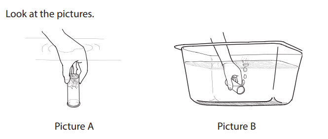 A student has a container of air. She takes the lid off and sets the container on the dock. Mark Xs on the picture to show where the air will be 10 minutes after she opens the jar.