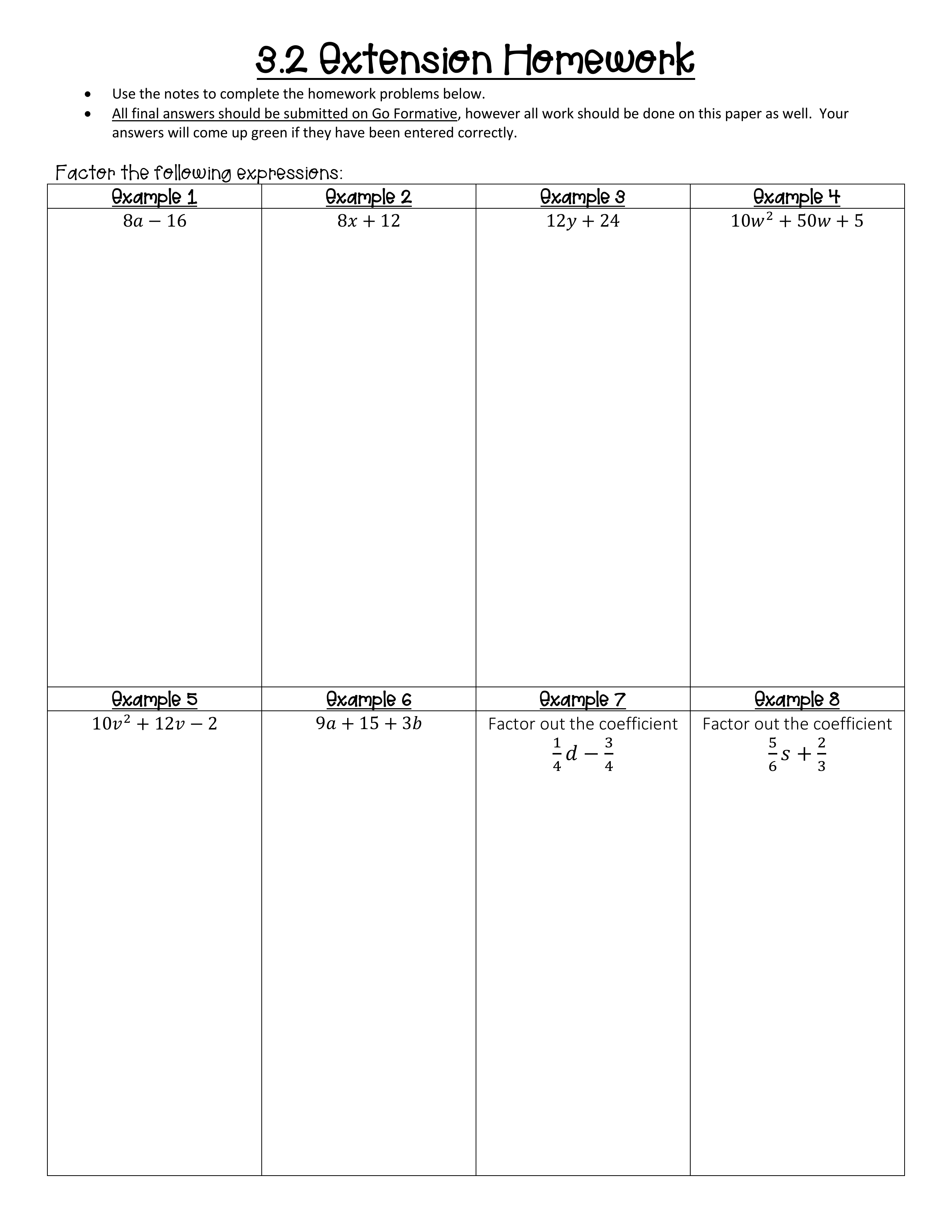 3.2 Combining Like Terms EXTENSION Notes & HW