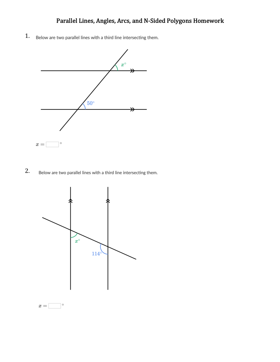 Wednesday(3/24): Parallel Lines/Angles/Arcs and N-sided Polygons HW