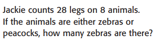 Hint: What combination of zebras and peacocks will have 28 legs?