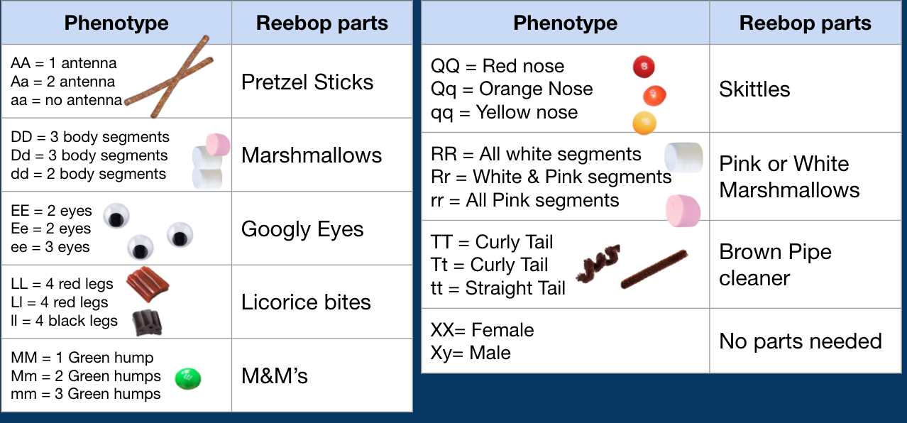 Perform a Punnett Square for the two Reebop parents (Ee x Ee) for the eye number. E= 2 eyes, e= 3 eyes. What is the probability of an offspring with 2 eyes?