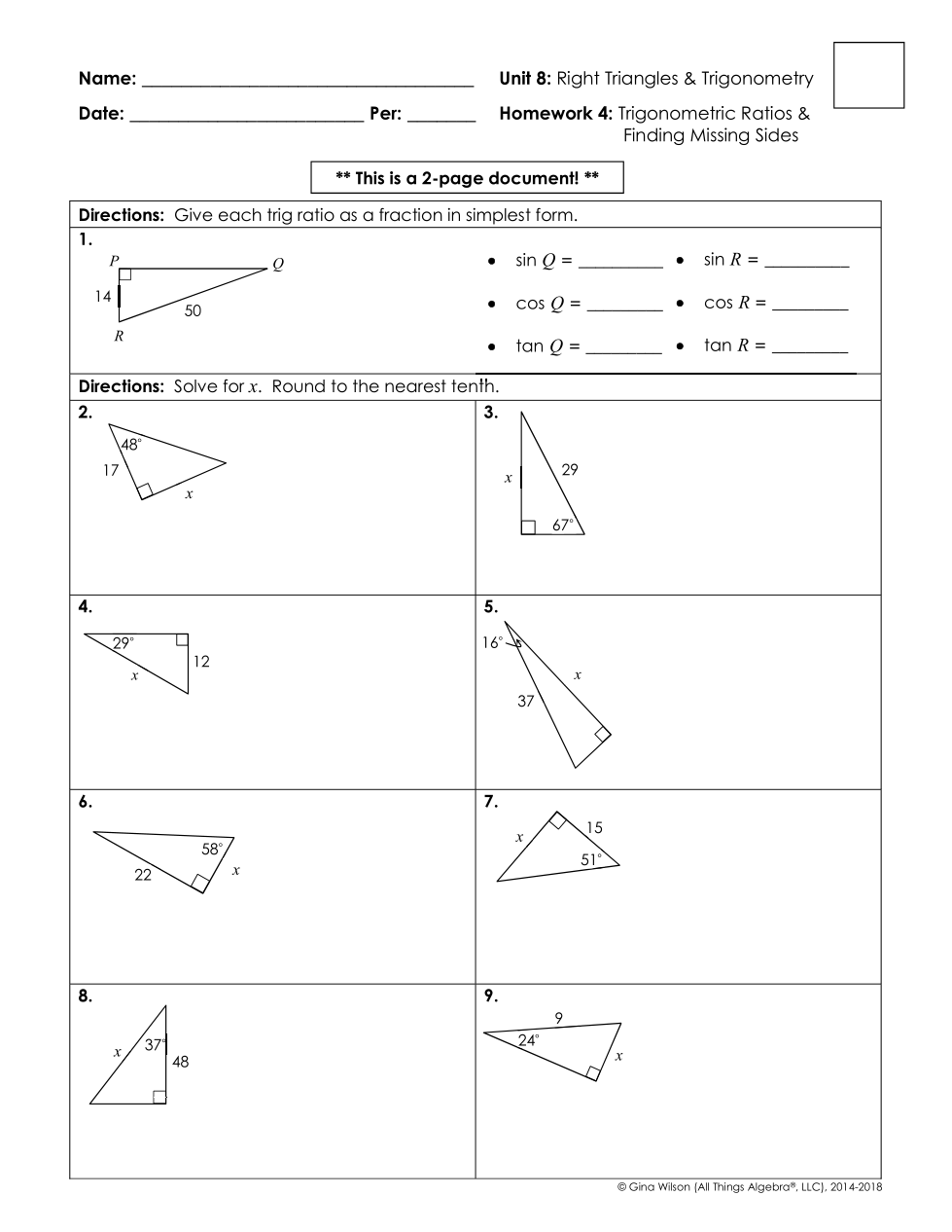 8.3 Trig Ratio Missing Side HG