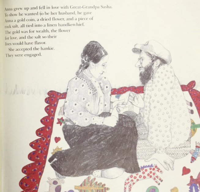 According to the passage, why did Great-Grandpa Sasha give Anna a handkerchief with gold, a flower, and salt inside?