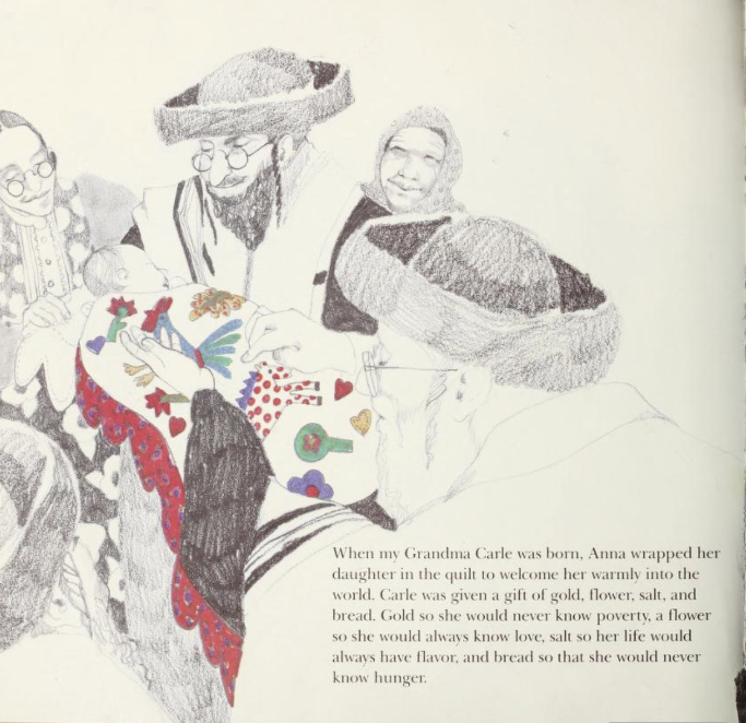 Which key detail would be most important to include in a retelling of The Keeping Quilt?