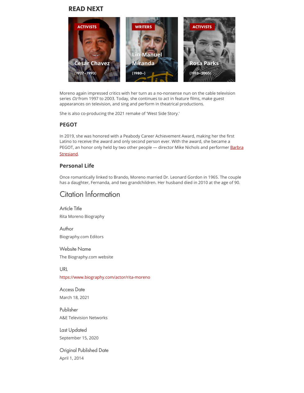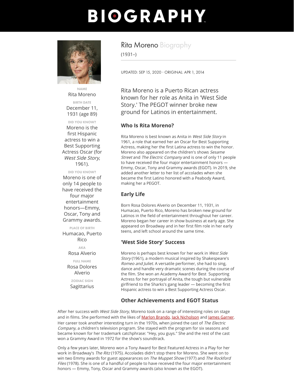 What do you feel is the most important event in Rita Moreno's life? Write 1 paragraph to explain your answer.