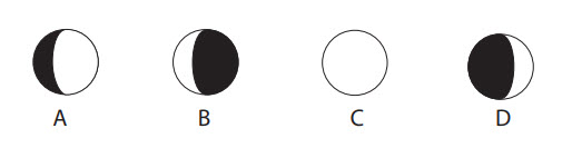Look at the Moon phases above. Now look at the Moons A, B, C, D. Which two come next in the blank boxes.