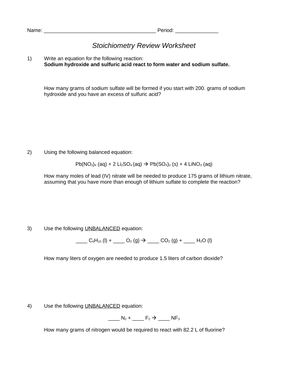 Use the following UNBALANCED equation: REMINDER, BALANCE THE EQUATION