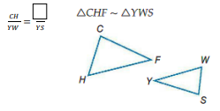 Fill in the box with the correct side name to complete the proportion given the similar polygons.