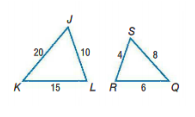 Which of the similarity statements is correct for each set of similar triangles? Careful, look at the numbers carefully.