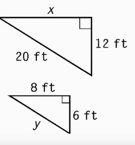 The two triangles below are similar. Write a proportion and solve for y.