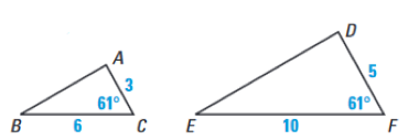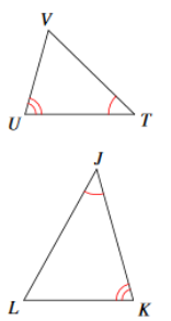 Determine if the two triangles below are similar based on the information given. If yes, choose the correct postulate, if not, choose not similar.