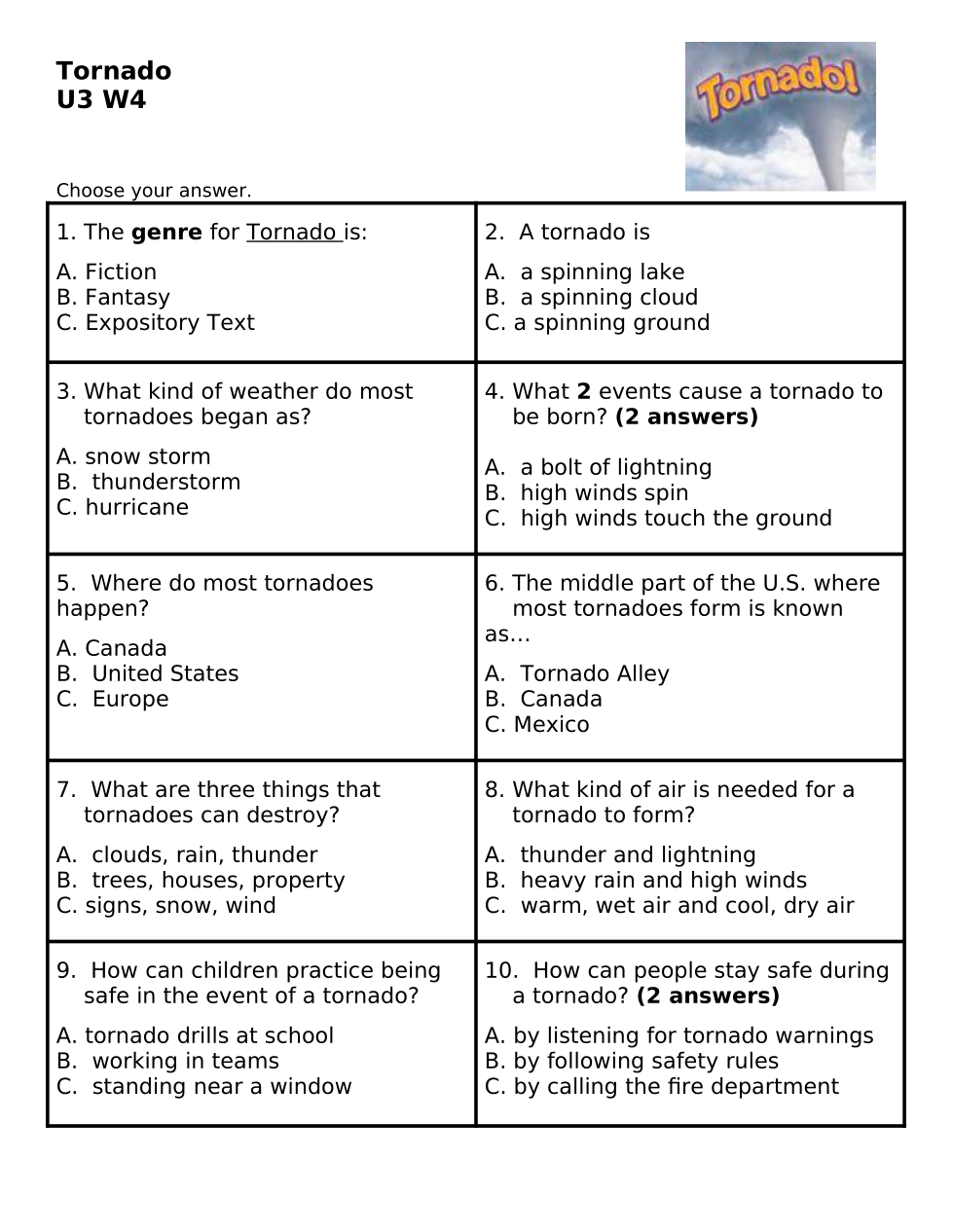 Tornado! U3 W4 Comprehension
