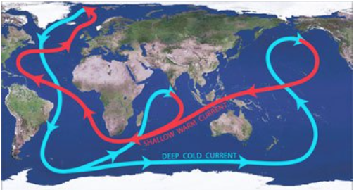 What do we call the constantly moving system of deep-ocean circulation driven by differences in temperature and salinity?