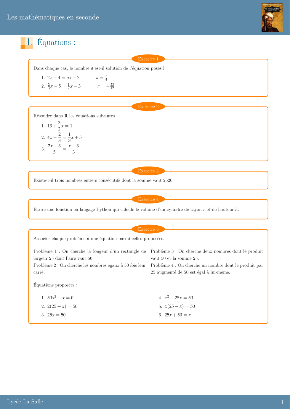 Le problème 1 correspond à l'équation .....
