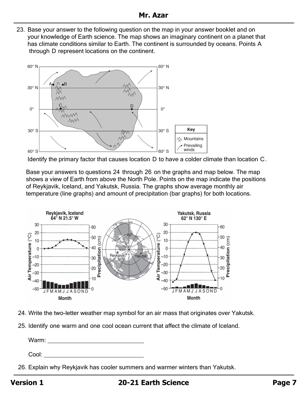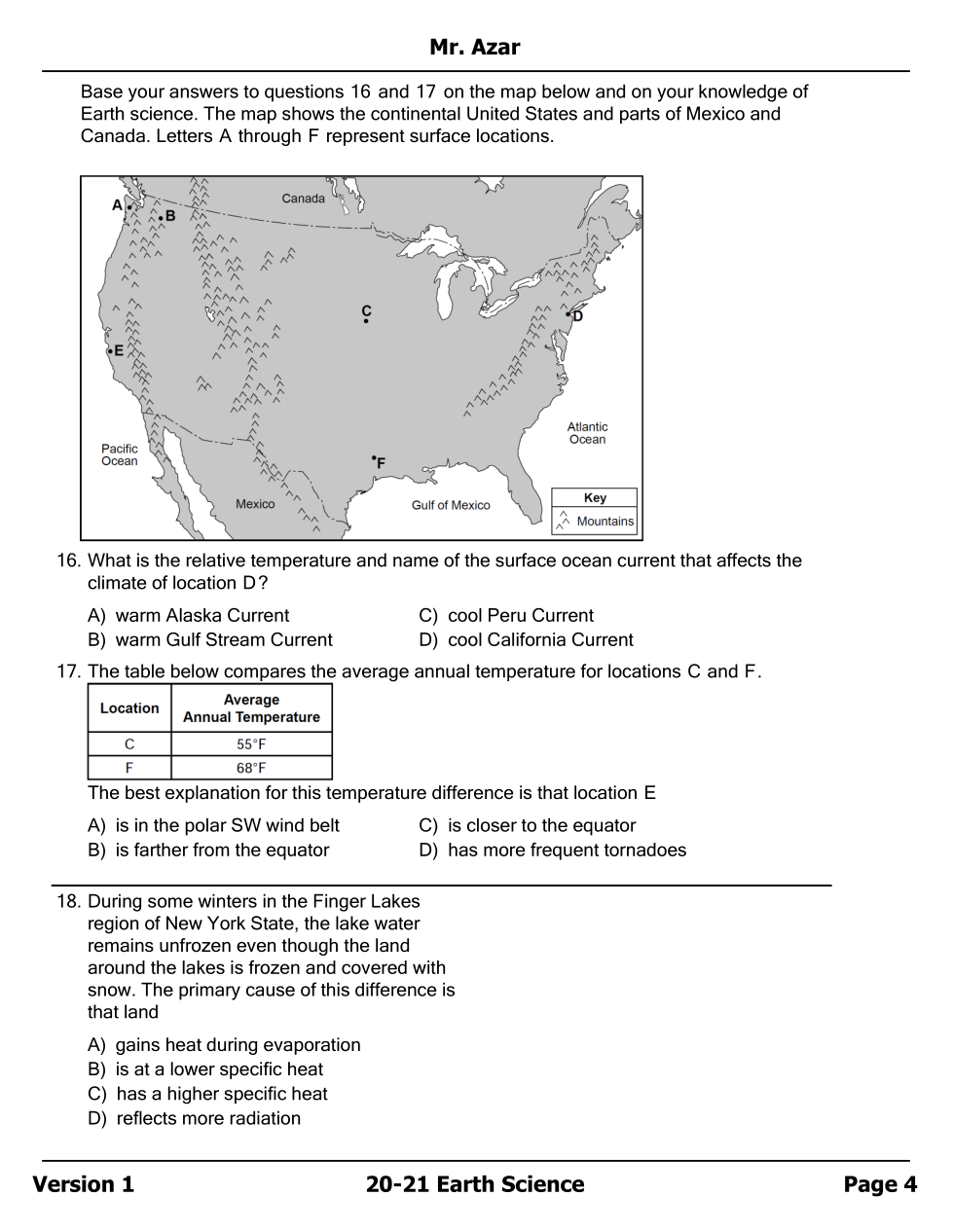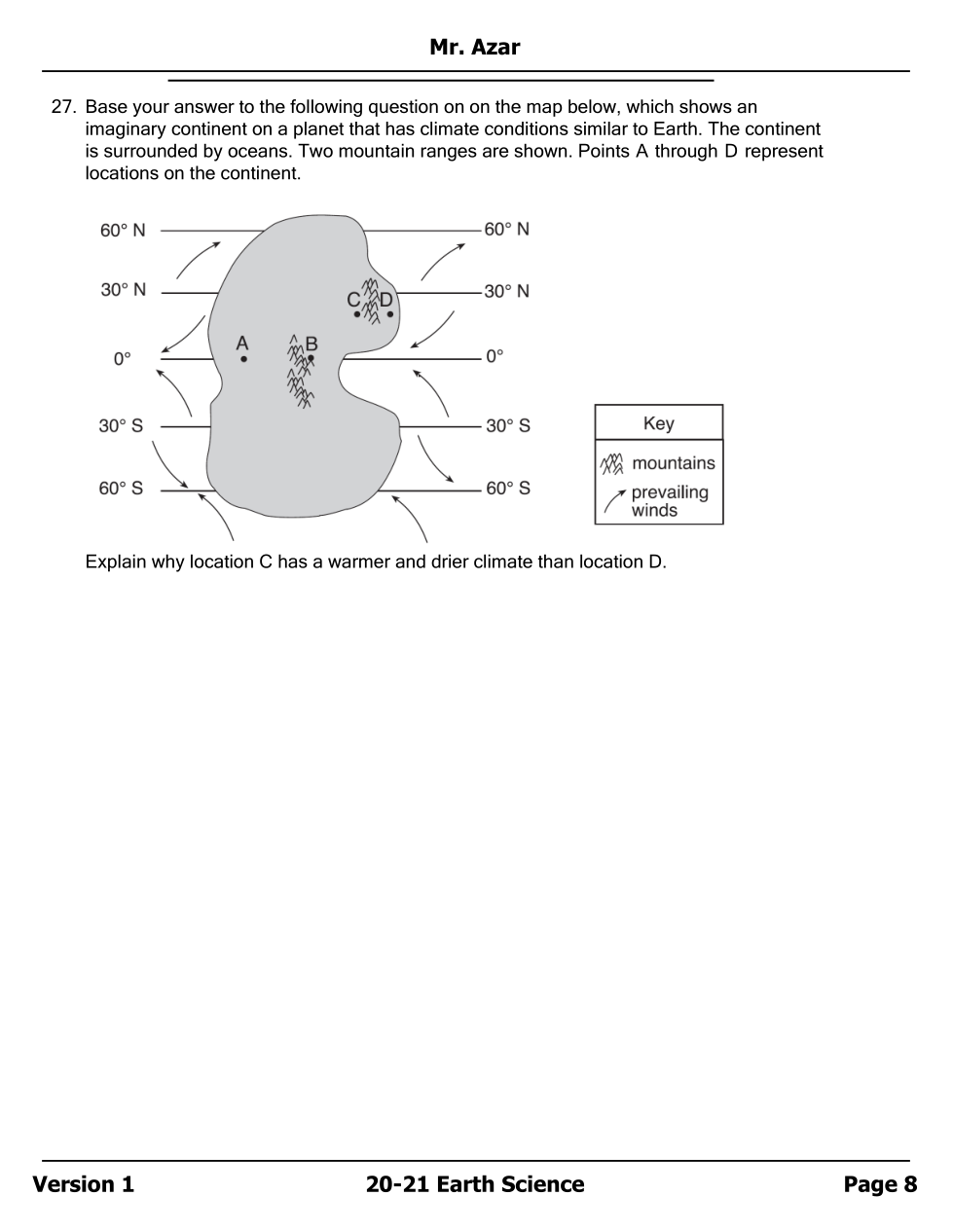 IGNORE THE TABLE. THE QUESTION JUST WANTS TO KNOW WHAT FACTOR IS INFLUENCING THE CLIMATE AT E MOST.