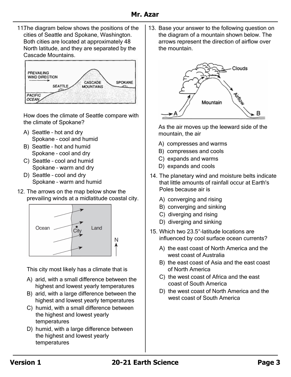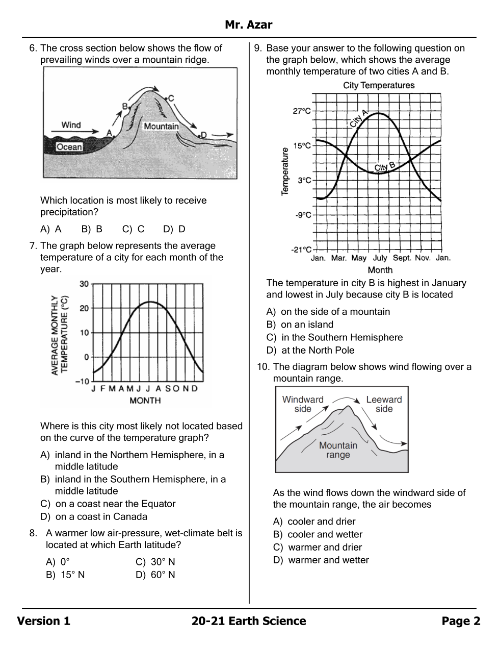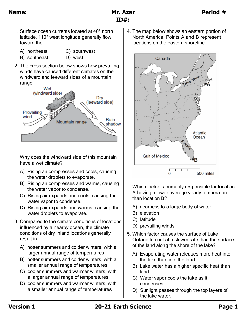 IGNORE THE TABLE. THE QUESTION JUST WANTS TO KNOW WHAT FACTOR IS INFLUENCING THE CLIMATE AT E MOST.