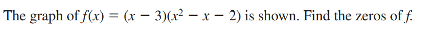 Recall that a zero of a function is an x-intercept of the graph of the function.