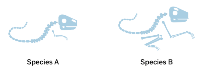 Above are the bones of two imaginary species. Look at the body structures for both species, then select which body structures these two species share.
