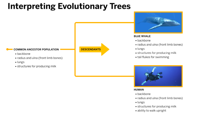 How can you use structural evidence to help support why humans and blue whales are related species?CFS:- student describes the relationship between anatomical similarities and differences in animal species