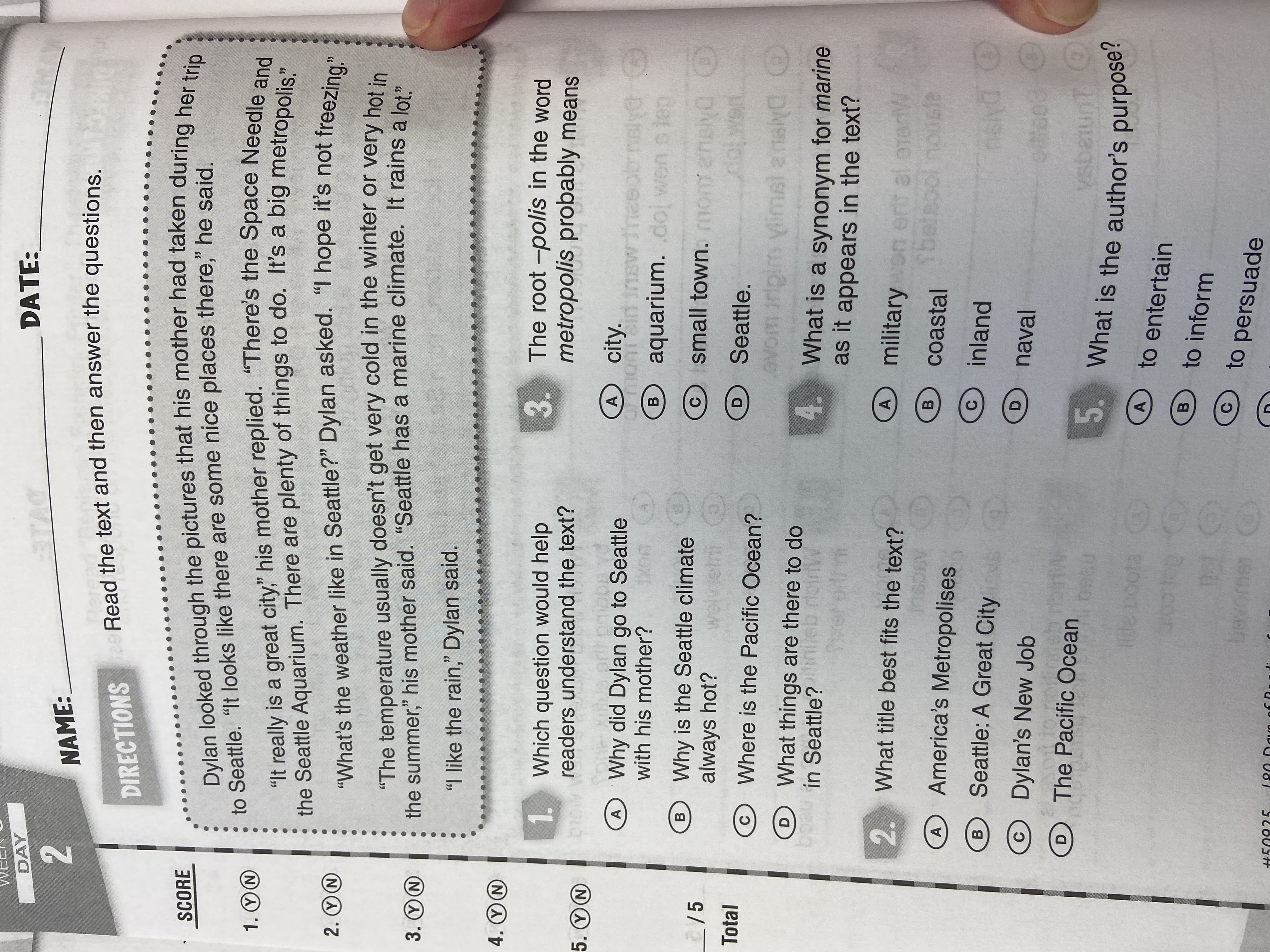 A. Why did Dylan go to Seattle with his mother