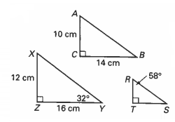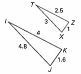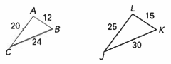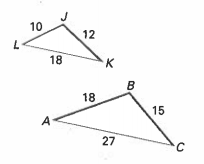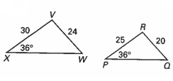 Determine whether each pair of triangles are similar by using SSS, SAS, or AA similarity postulates. If the pair is similar, write a similarity statement in the "show your work"' box. If the pair is not similar, explain why. You must have math to support your answer either way.