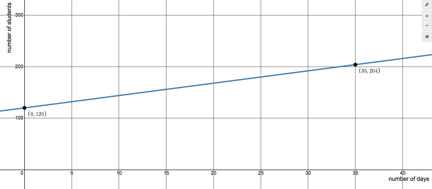 Javier wanted to know how long it will take to meet with all his students. He graphs the equation
