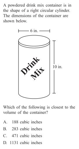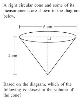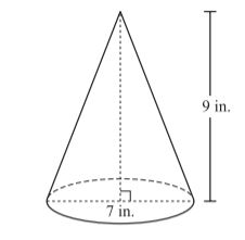A right circular cone has a volume of 39 cubic inches and a radius of 2 1/2 inches. Which of the following is closest to the height of the cone?