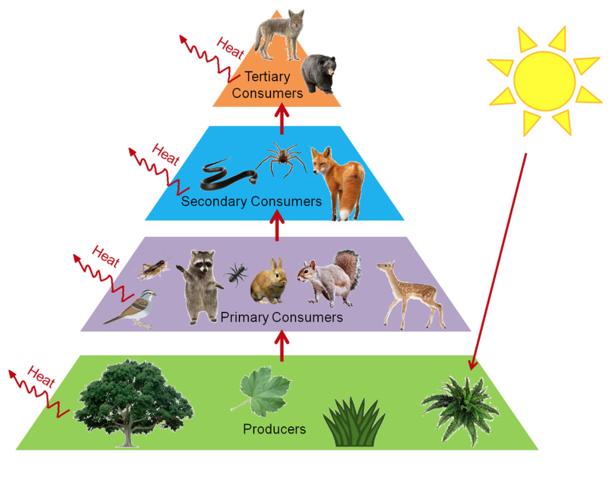 Using the energy pyramid above, which level gets the most energy directly from the producers?