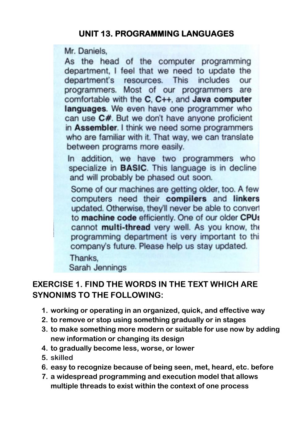 UNIT 13. VOCABULARY CHECK