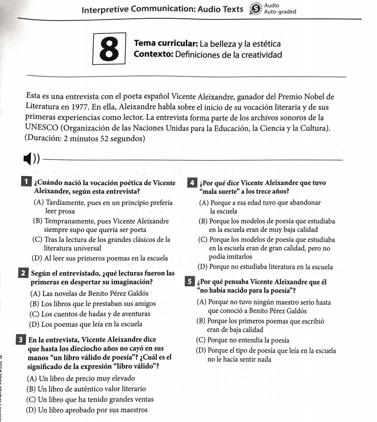 ¿Cuál es la evidencia del audio para # 9 que sustenta tu respuesta?