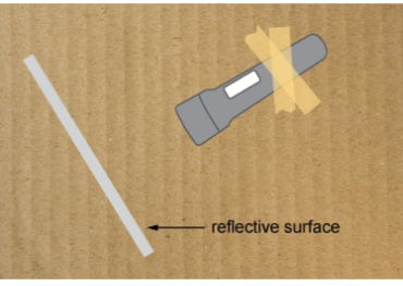Maya builds a device that uses a flashlight and a reflective surface, like a mirror, to point the beam of light in different directions. The picture shows her device. How would the light be impacted if Maya changed the mirror to a prism?