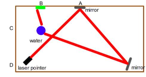 If the water were removed from this set-up, at what point would the light travel toward now?