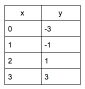 What is the equation from the table below? (don't put any spaces in your answer and be sure to type it as y=mx+b)