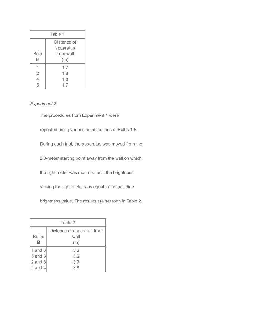 trial with Bulbs 3 and 4 lit, the distance from the