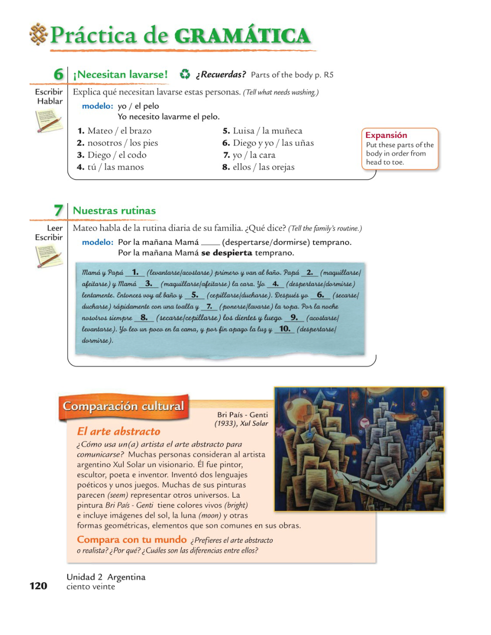 This is hard to read, so sentences are retyped here. Choose what makes sense in the blank: ....y Mamá _____ la cara.