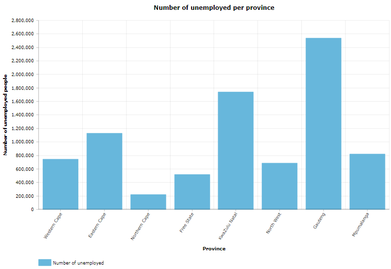 2. Why do you think Gauteng has the highest unemployed people. The most populated province is Kwazulu