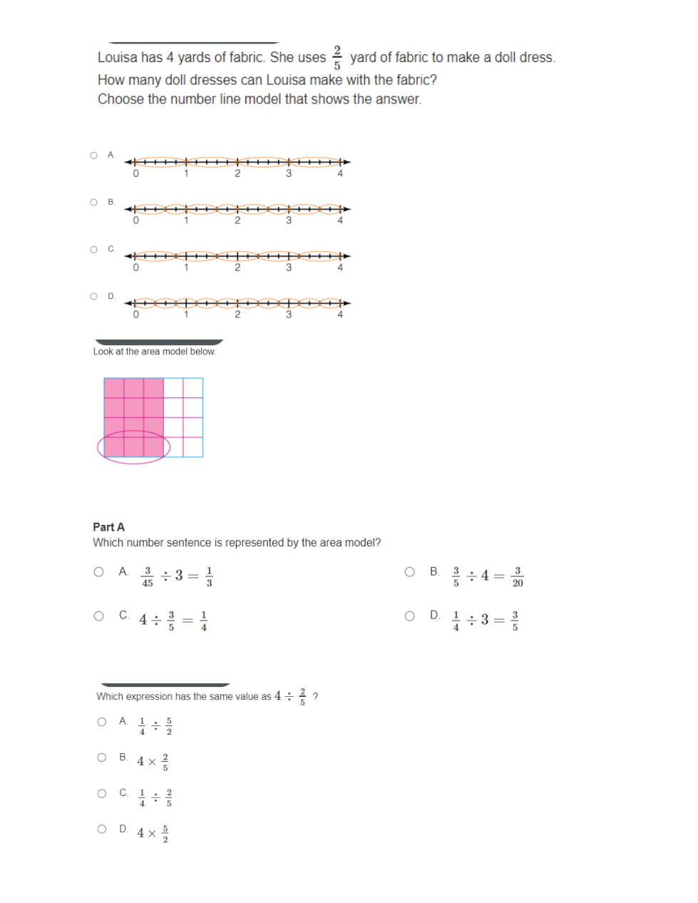 Which expression has the same value as 4 divided by 2/5?