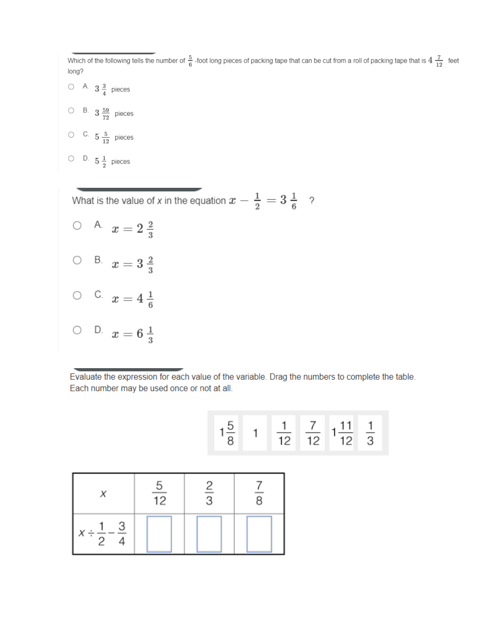 Evaluate the expression for the value of x=5/12.