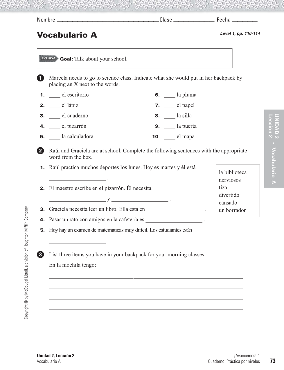 Numbers 1 to 10: Choose all the items you would put in your backpack for Science Class.