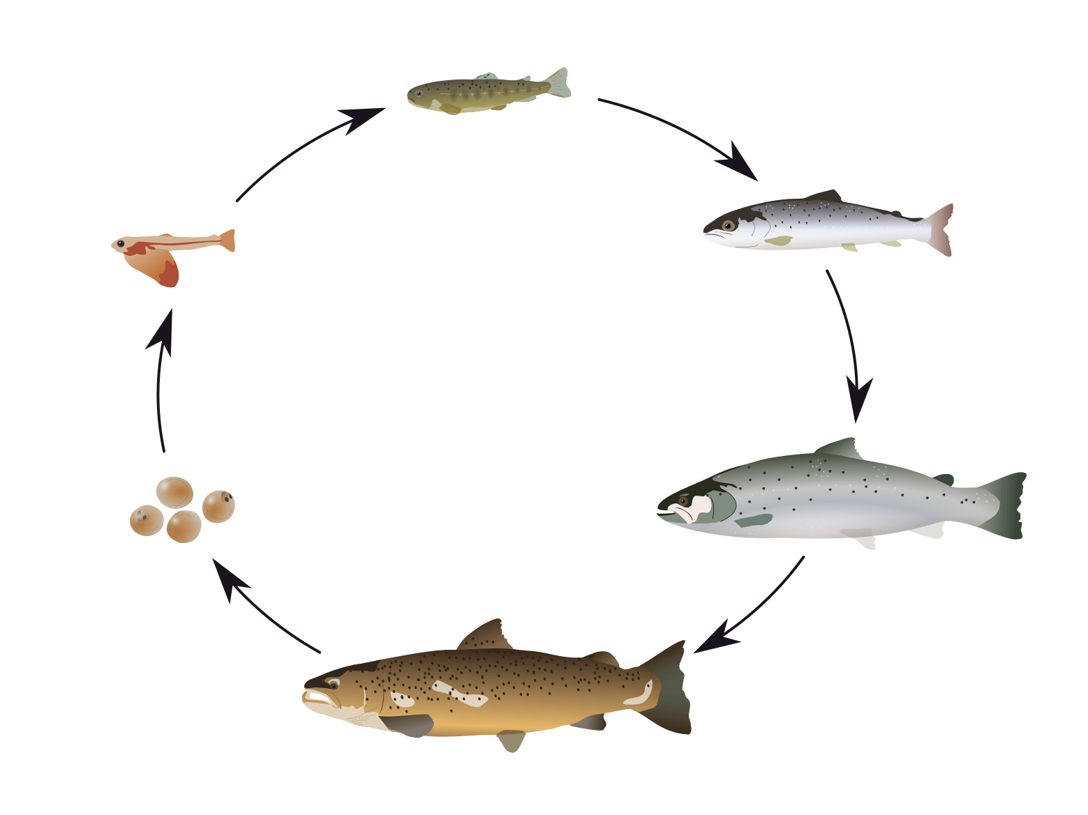 Je ziet hieronder een plaatje met daarop de levenscyclus van de kwal. Onder het plaatje staan alle stadia omschreven.