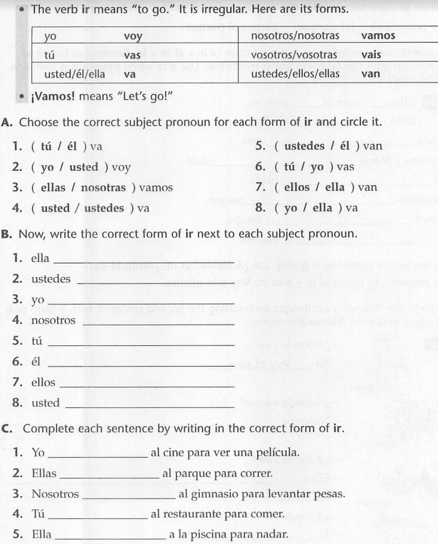 Write the 5 conjugations of the VERB IR (They all start with