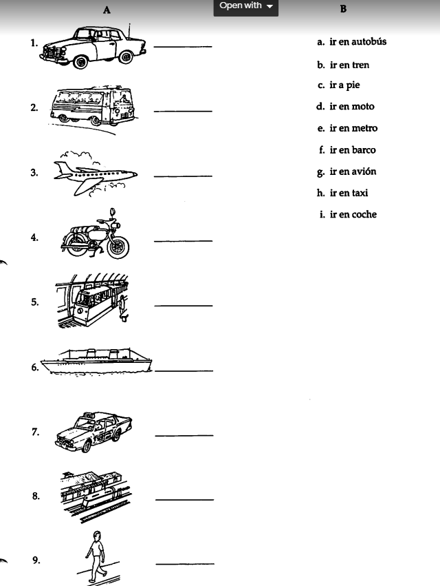 Match the Drawing with the mode of transportation