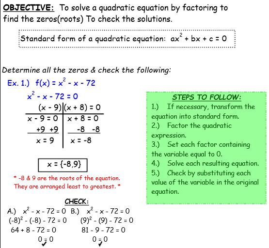 DIRECTIONS: Solve each quadratic equation below. Make sure to check your answer on your calculator.